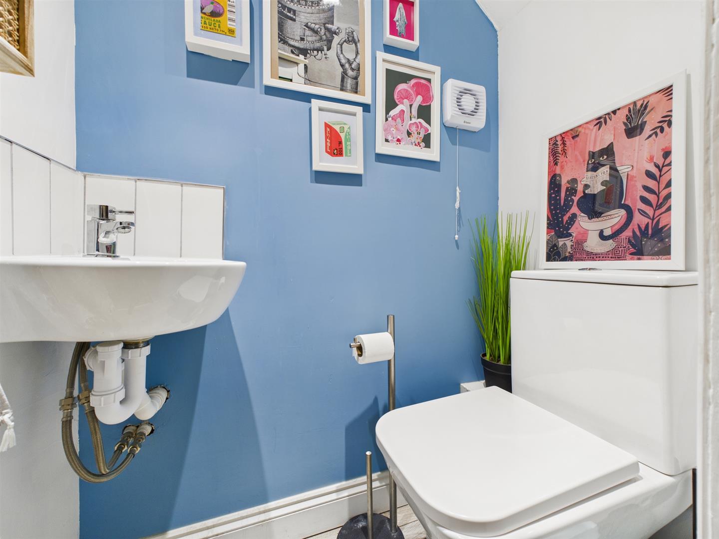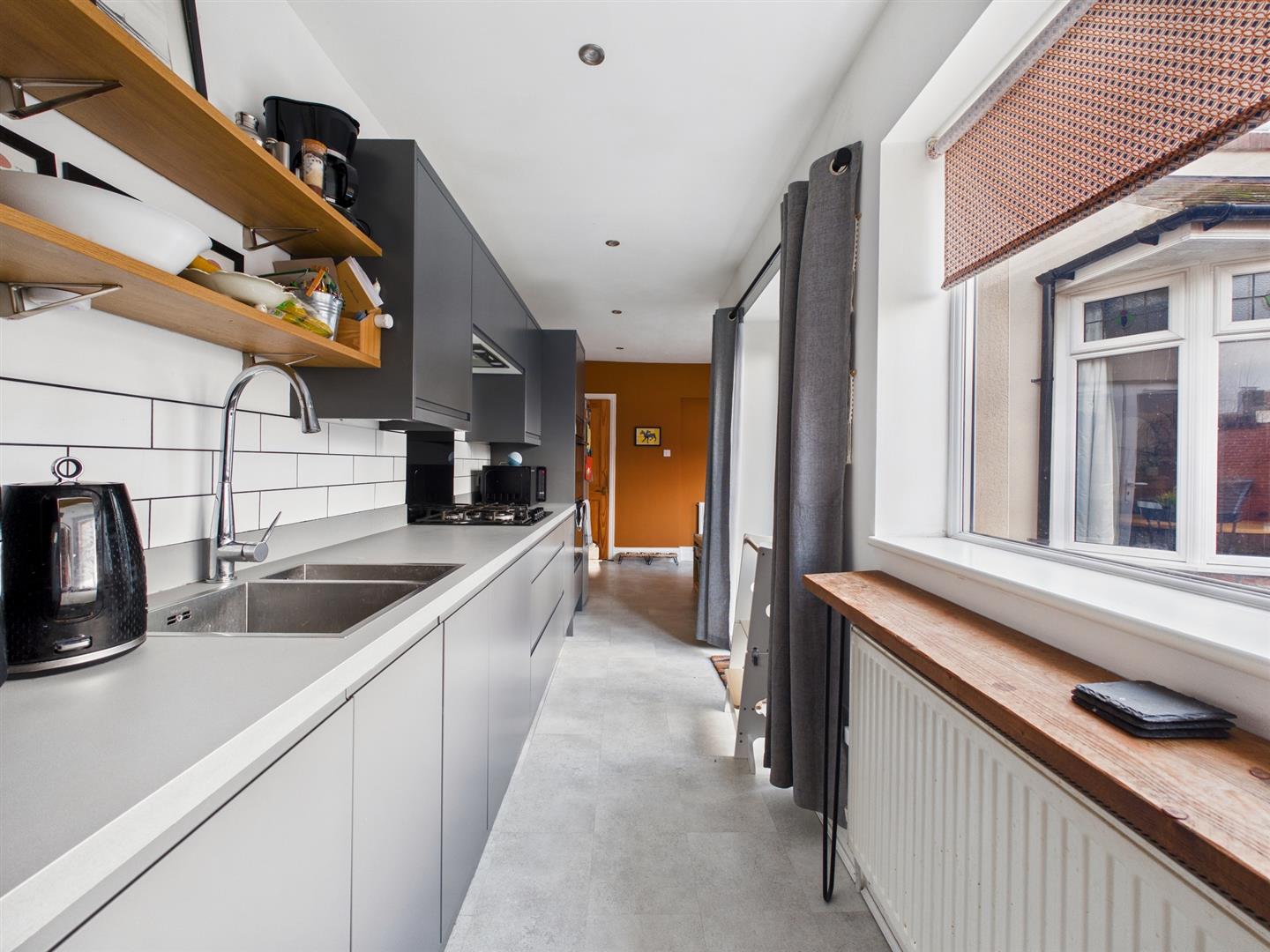 With over 1050 square feet of accommodation set over two floors, this characterful property consists of a vestibule and entrance hallway with stairs up to the first floor and doors to reception rooms and downstairs WC. The first reception room is light and spacious with a walk in bay window and the rear facing reception room is open plan to the kitchen with space for a family dining table and a feature painted fireplace with log burner. The lovely, contemporary kitchen benefits from a good range of units with contrasting worktops and integrated appliances including eye level double oven, gas hob, extractor hood and space for a fridge freezer. There is also a downstairs WC and a utility room with a larder unit, sink, space for a washing machine and built in shelving and storage. To the first floor there are two stylish double bedrooms, both with period cast iron fireplaces and one with fitted wardrobes. There is also a smaller third bedroom and a good sized, contemporary bathroom benefitting from a bath with shower shower over, vanity wash basin with drawers beneath and an integrated WC. Externally there is a low maintenance front garden with gravelled areas and planted borders and the rear garden is laid to lawn with two decked patios and planted borders.
