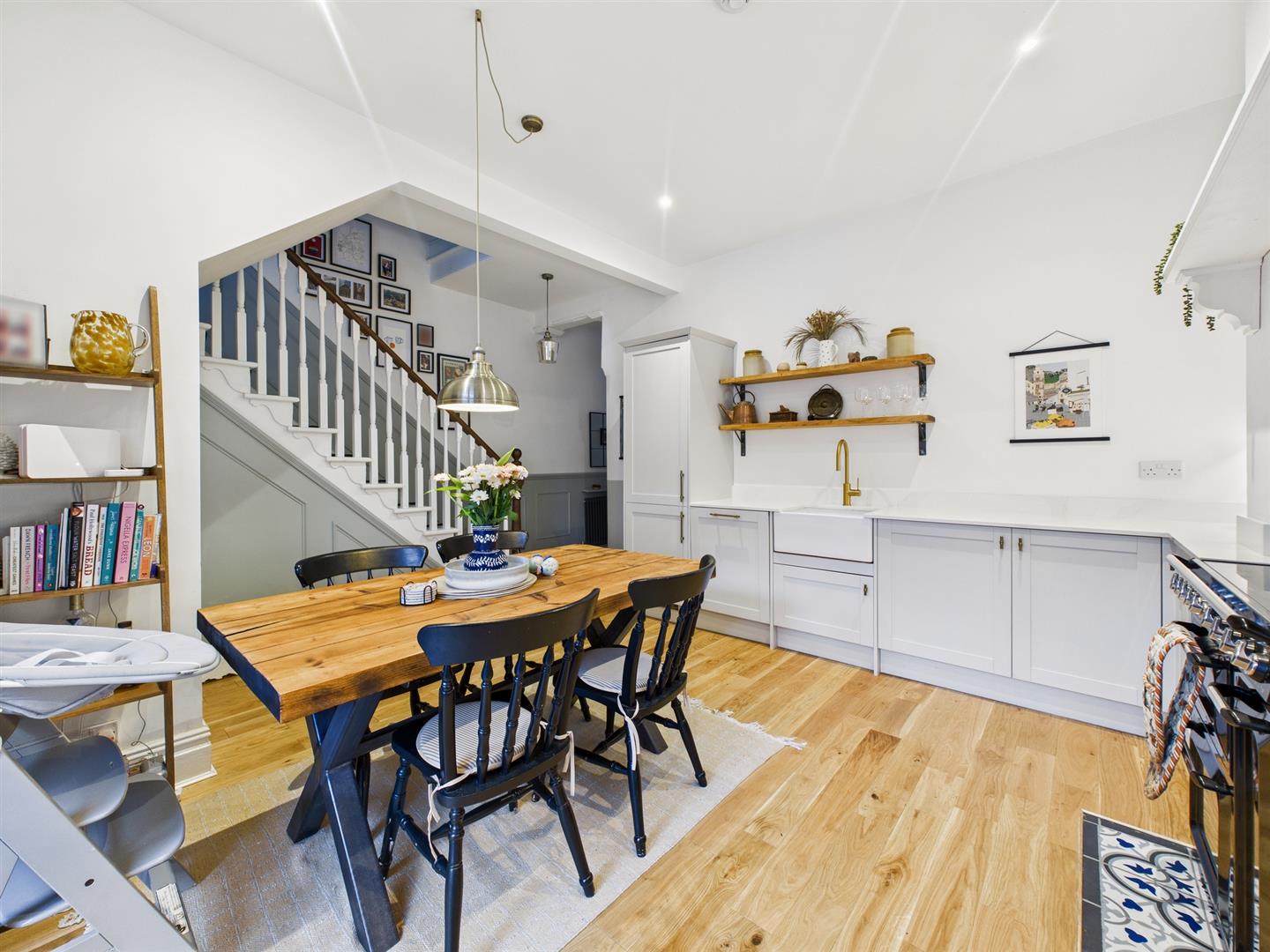 With over 1030 square feet of accommodation set over two floors this stunning property consists of a covered porch, vestibule and welcoming entrance hallway which presents period features, stairs up to the first floor and doors to the reception room. The spacious and stylish front facing reception room has a period features cast iron fireplace. There is an immaculately presented open plan kitchen dining area benefitting from a good range of wall, base and drawer units with stone worktops and under cabinet lighting. Integrated appliances include fridge freezer, dishwasher and there is space for a range oven. The utility room has laminate worktops, spaces for appliances, under stairs cupboard and there is also a downstairs W/C . To the first floor there are two generously sized bedrooms, a third smaller bedroom and a family bathroom with roll top bath, walk in shower, wash basin and low-level W/C. Externally there is a low maintenance front garden with planted borders and a south facing rear yard. The amazing condition, generous size and fabulous location of this property makes for an exciting opportunity which can only truly be appreciated by a visit.