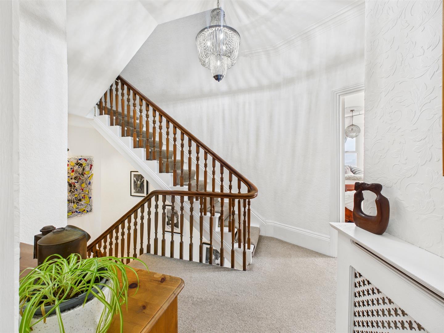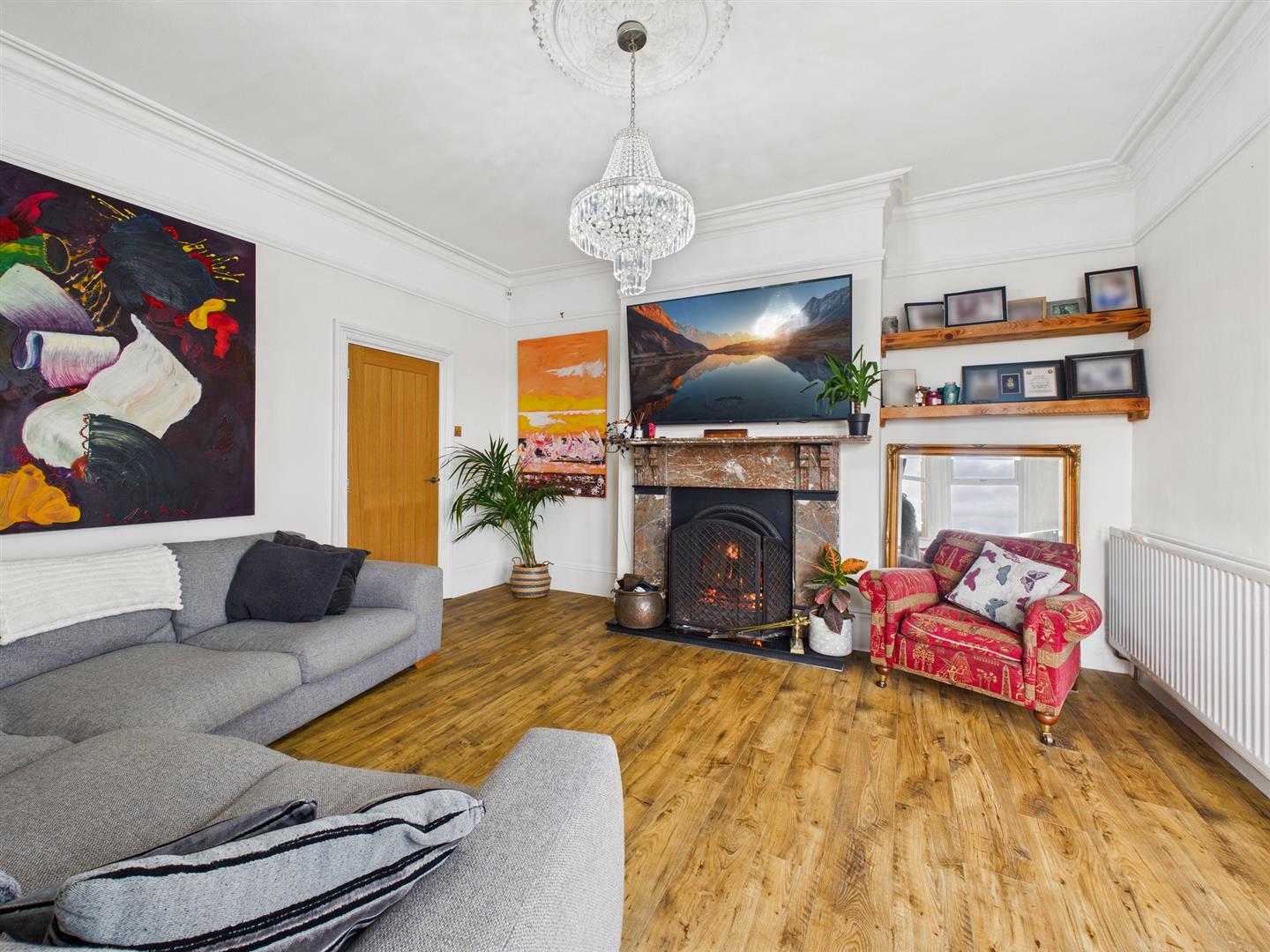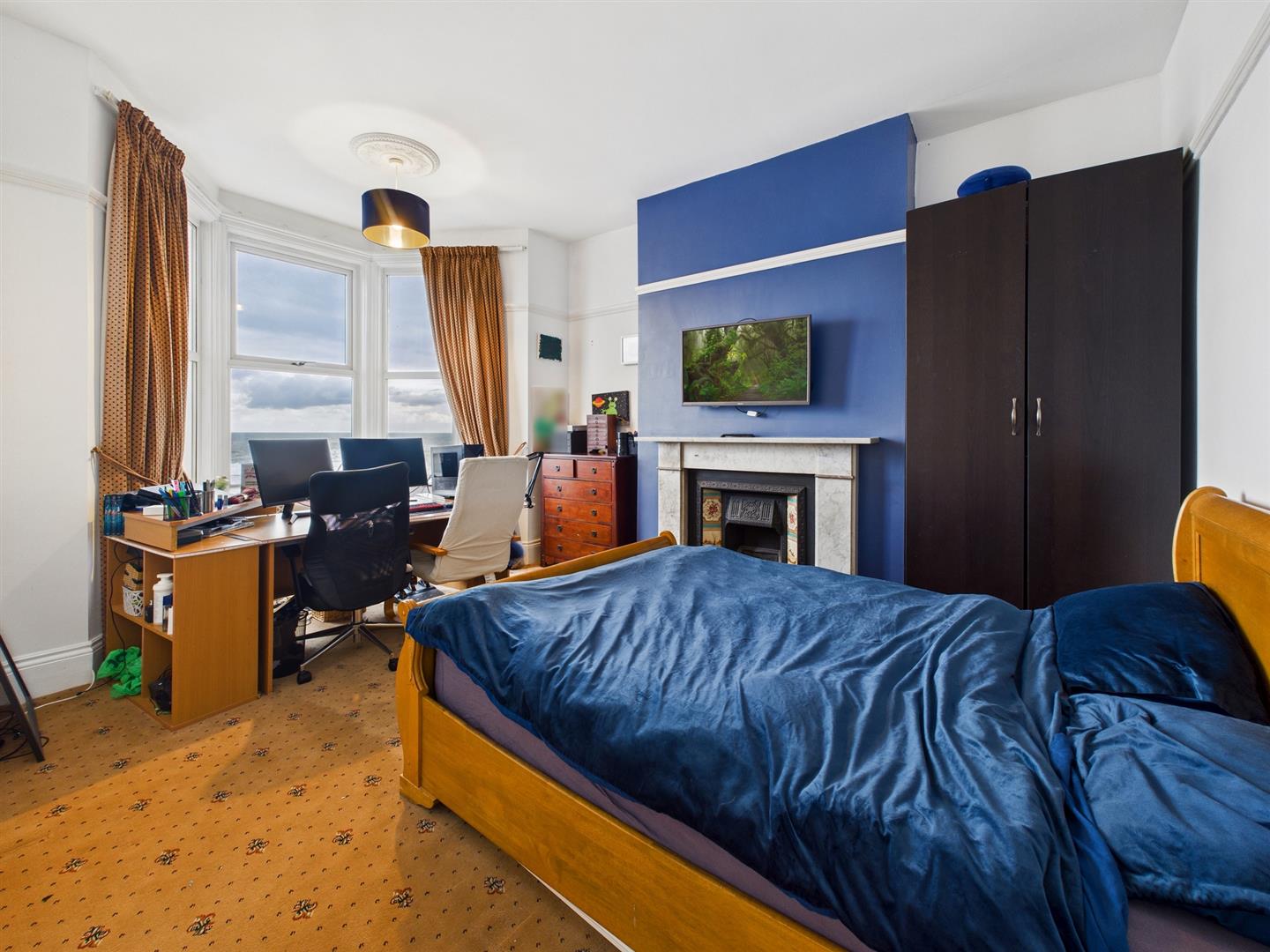 With over 2500 square feet of accommodation set over three floors, this characterful property consists of grand and welcoming entrance hallway and the spacious reception room features a period fireplace with open fire and an Oriel window providing beautiful sea views. The fabulous dining kitchen easily accommodates an eight seater dining table and benefits from a good range of contemporary units with Quartz worktops, an Island with breakfast bar and integrated appliances including eye level double oven, gas hob, dishwasher and microwave oven. There is also space for an American style fridge freezer, a pantry, a period fireplace with open fire and a bay window with built in window seat. There is also a utility room with further units and space for appliances, and a downstairs WC. To the first floor there are two generously sized bedrooms, both with period fireplaces and one with an Oriel window, including window seat, and providing more sea views. This floor also includes a study and beautiful bathroom with free standing bath, walk in rainfall shower, twin vanity washbasins, bidet, WC and period fireplace. To the top floor there are three spacious bedrooms, one with another Oriel window and one with fitted wardrobes. There is also a dressing room and another bathroom with free standing bath, walk in rainfall shower, wash basin and WC. Externally there is a detached garage, a substantial front garden with driveway parking for multiple cars and a West facing rear garden with decking.