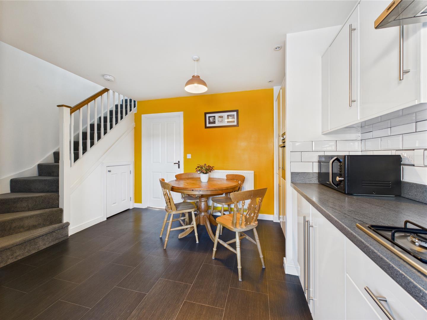 With over 950 square feet of accommodation set over two floors, this well presented property consists of an entrance hallway with doors to the kitchen diner and downstairs WC. The lovely kitchen diner easily accommodates a dining table and benefits from a good range of units with contrasting worktops and integrated appliances including eye level oven, gas hob, chimney hood, fridge freezer, slimline dishwasher and washing machine. There are stairs up to the first floor and a door to the reception room. The reception room is light and spacious with French doors leading out to the rear garden. To the first floor there are two storage cupboards on the landing and three bedroom. Bedroom one has a modern ensuite with walk in shower, pedestal washbasin and low level WC and there is also a family bathroom with panelled bath, pedestal wash basin and low level WC. Externally the property benefits from an integral garage, a front garden with driveway parking and a south facing rear garden with lawn, patio and raised planted beds.