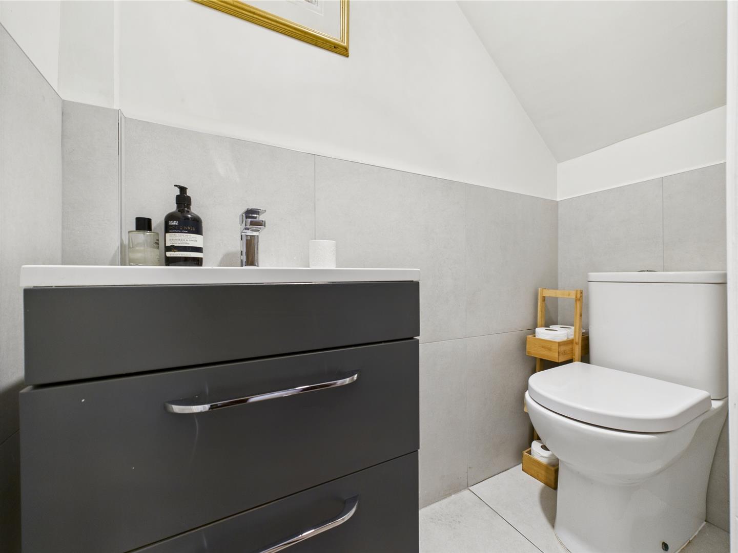 With over 2000 square feet of accommodation set over three floors, this beautiful property consists of a spacious vestibule leading to a grand entrance hallway with staircase up to the first floor and doors to the reception rooms, dining kitchen and downstairs WC. Both reception rooms are light and elegant, and reception room one is dual aspect with a lovely feature period marble fireplace. The fabulous dining kitchen easily accommodates an eight seater dining table and there is a recess to chimney breast with multi fuel burner. The kitchen benefits from an impressive range of units with Quartz worktops, space for a range oven with extractor hood and an Island with base units, drawers and integrated bin storage. Integrated appliances include dishwasher, fridge freezer, washing machine, tumble dryer and microwave. To the first floor landing there is a cupboard and doors to four light and airy bedrooms, the main bedroom is dual aspect with fitted wardrobes and two bedrooms have built in wardrobes. There is also a beautiful and good sized, family bathroom benefiting from a freestanding double ended bath with floor mounted mixer tap and shower attachment, walk in rainfall shower, countertop wash basin and low level WC. The fifth spacious bedroom is located to the top floor with a contemporary ensuite with walk in shower, vanity wash basin and low level WC. Externally there is an attached garage and front and side paved gardens with planters including mature shrubs and space for seating.