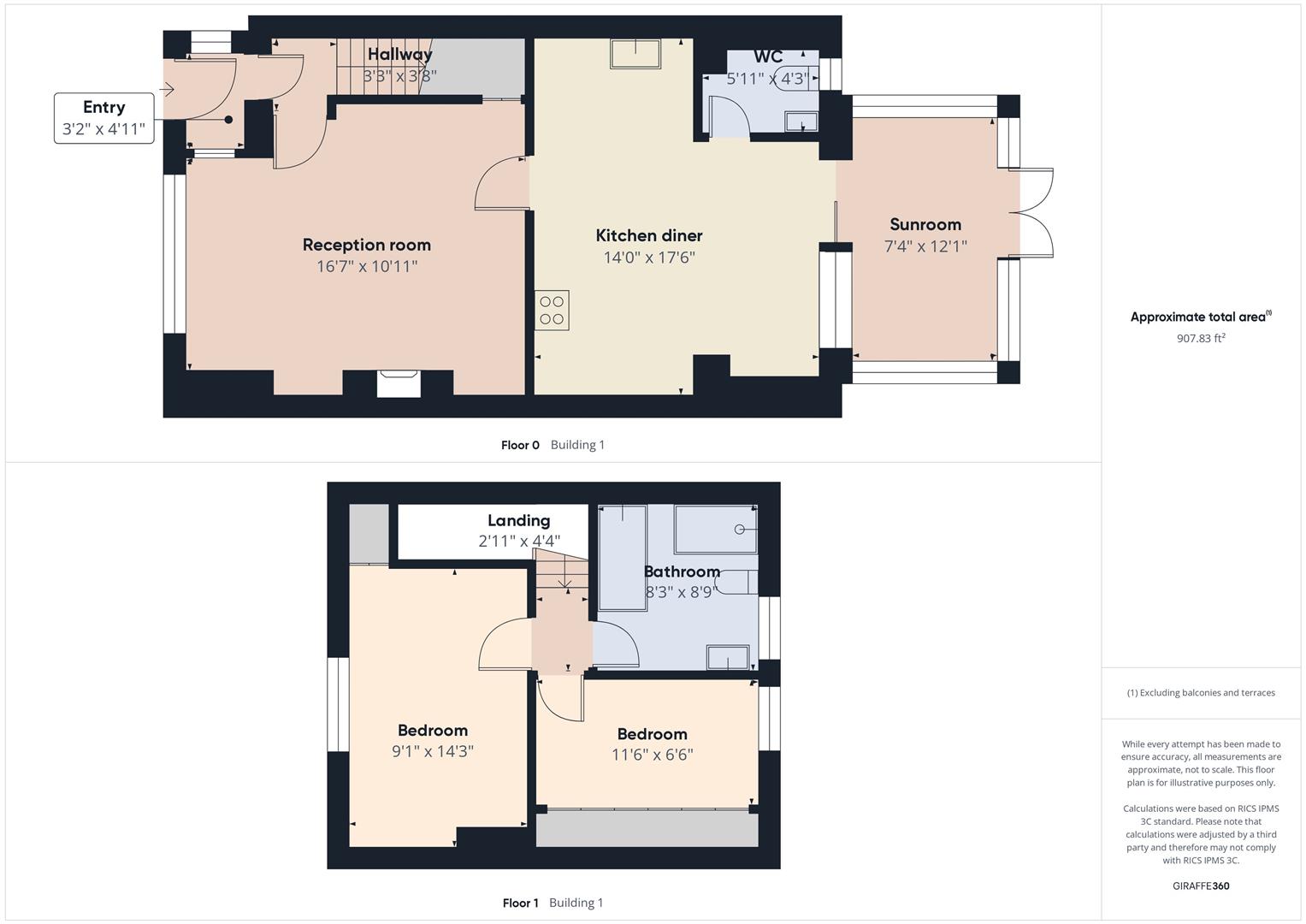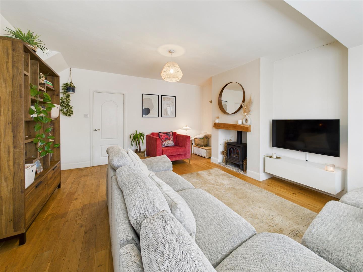With over 900 square feet of accommodation set over two floors this lovely property consists of a vestibule and welcoming entrance hallway with stairs up to the first floor and doors to the reception room. The spacious and stylish reception room is front facing with recess to chimney breast incorporating a electric log style burner. The fabulous kitchen diner easily accommodates a dining table and benefits from a good range of units with contrasting worktops and integrated appliances including eye level double oven, gas hob and chimney hood. There is also a sun room and downstairs WC with wall mounted wash basin. To the first floor there are two stylish bedrooms with fitted or built in wardrobes and a beautiful, contemporary bathroom with integrated bath, rainfall walk in shower, vanity wash basin and low level WC. Externally there is a front garden with driveway parking and a substantial rear garden with lawn and a home office currently used as a gym/office.