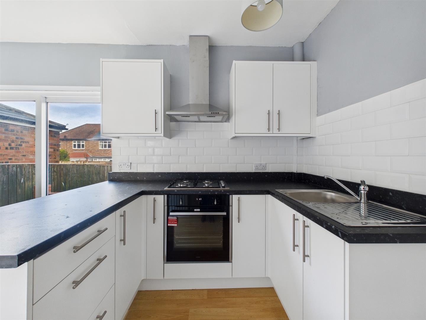 With over 850 square feet of accommodation set over two floors, this lovely property consists of an entrance hallway with stairs up to the first floor and light and spacious reception room with bay window and a feature fireplace with gas fire. The modern dining kitchen easily accommodates a dining table and benefits from a range of units with contrasting worktops, built in pantry and integrated appliances including oven, hob and chimney hood. The utility area has space for a fridge freezer and washing machine. To the first floor there are two double bedrooms, a smaller third bedroom and a family bathroom including a bath with shower over, wall mounted wash basin and low level WC. Externally there is an attached garage, a low maintenance front garden with driveway parking and a substantial rear garden with patio and lawn.
