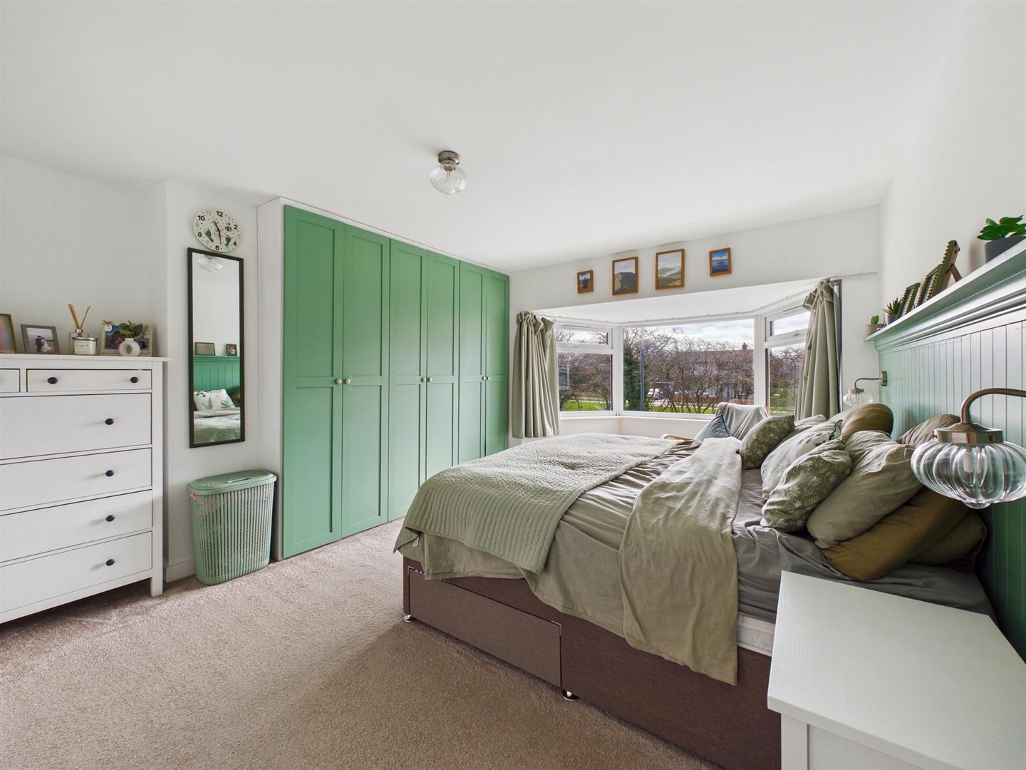 Upstairs, there are three well-proportioned bedrooms. The principal bedroom includes fitted wardrobes, a bay window and feature lighting and panelling to one wall. The family bathroom includes a bath, walk in shower, washbasin and WC, presented in a clean, modern style.