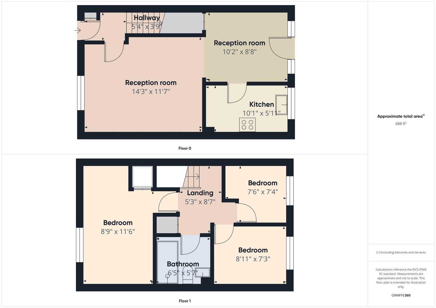 With over 680 square feet of accommodation set over two floors, this beautiful property consists of an entrance hallway with stairs up to the first floor and door to the light and spacious front facing reception room. This is open to the rear reception room which has space for a dining table, an under stairs storage cupboard and doors to the kitchen and rear garden. The contemporary kitchen benefits from a good range of units with contrasting worktops, space for a cooker with extractor hood over and spaces for a fridge freezer and washing machine. To the first floor there are three stylish bedrooms and a stylish bathroom with walk in shower, pedestal wash basin and integrated WC. Externally there is a landscaped front garden with mature shrubs, allocated parking to the rear, visitor parking to the front and a beautiful rear garden with artificial grass and gated access to the parking area.