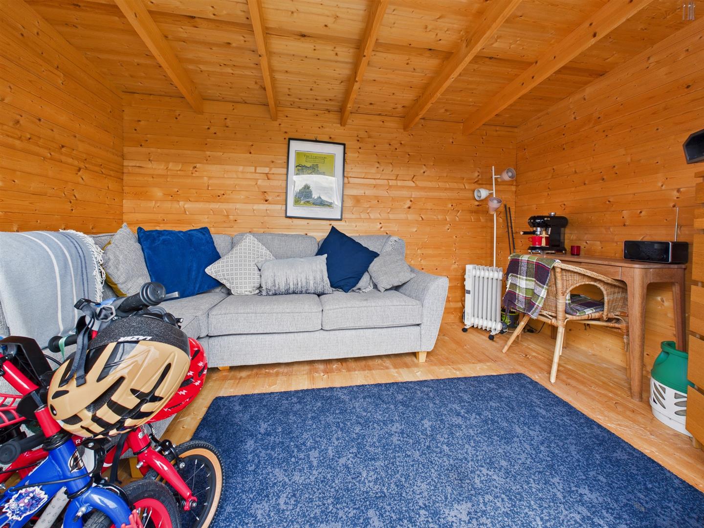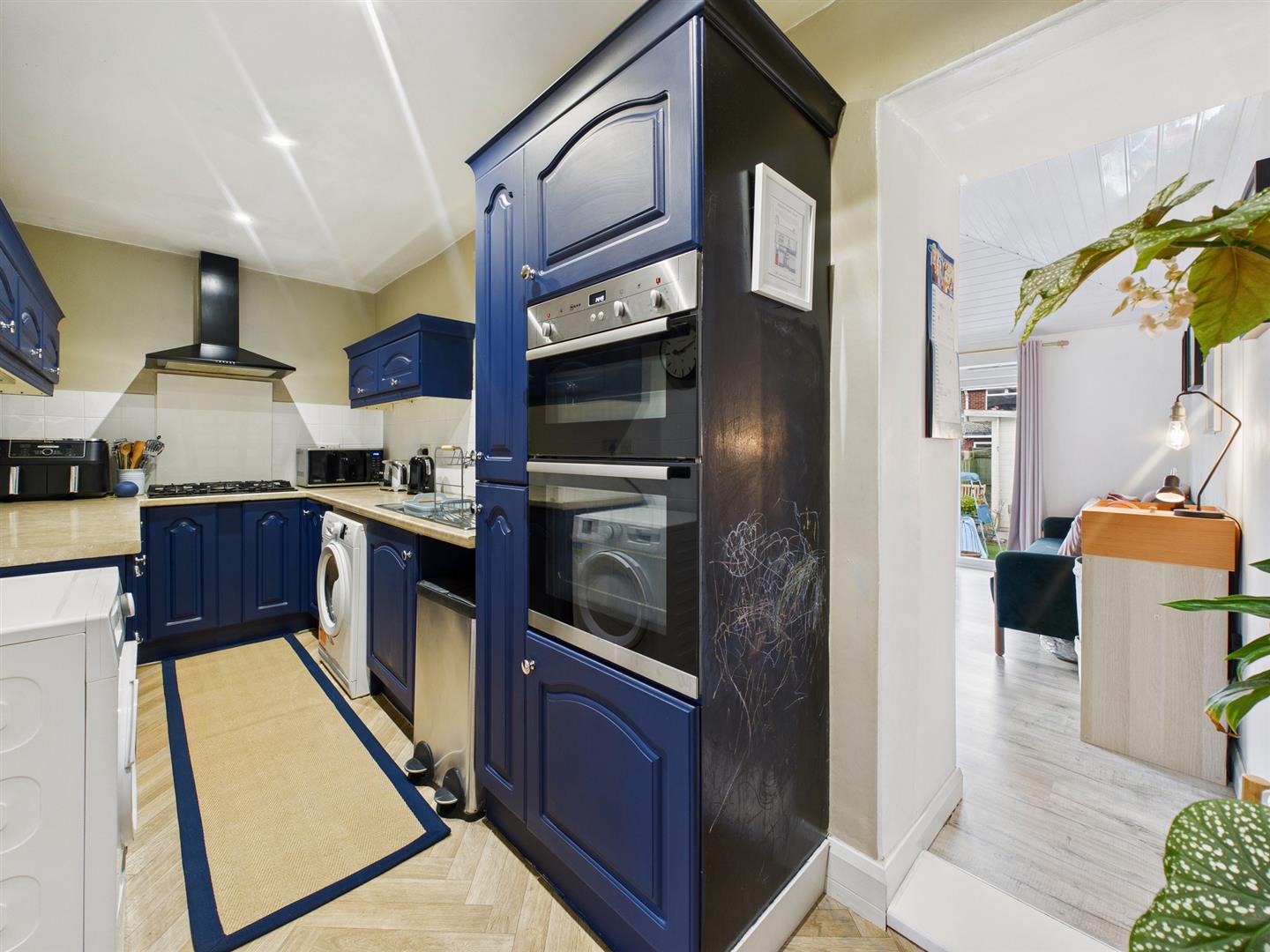 With over 700 square feet of accommodation set over two floors. There are two stylish reception rooms, one with feature fire place and the other with french doors leading to the rear garden and space for a family dining table. The modern kitchen benefits from a range of wall, base and drawer units, contrasting worktops, double eye level oven and a four ring gas hob with chimney hood. To the first floor there are two spacious bedrooms, one with fitted wardrobes, and a contemporary family bathroom with panelled bath and shower over, pedestal washbasin and low level WC. Externally the property benefits from a front lawned garden and a patioed rear garden with garden summer house.