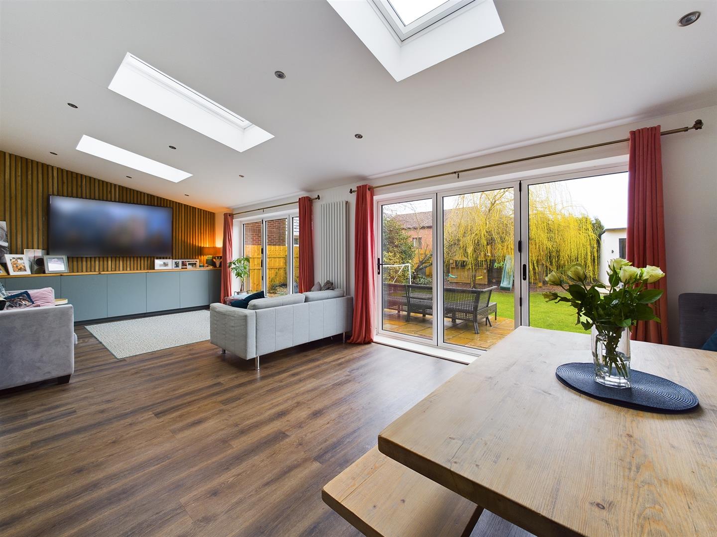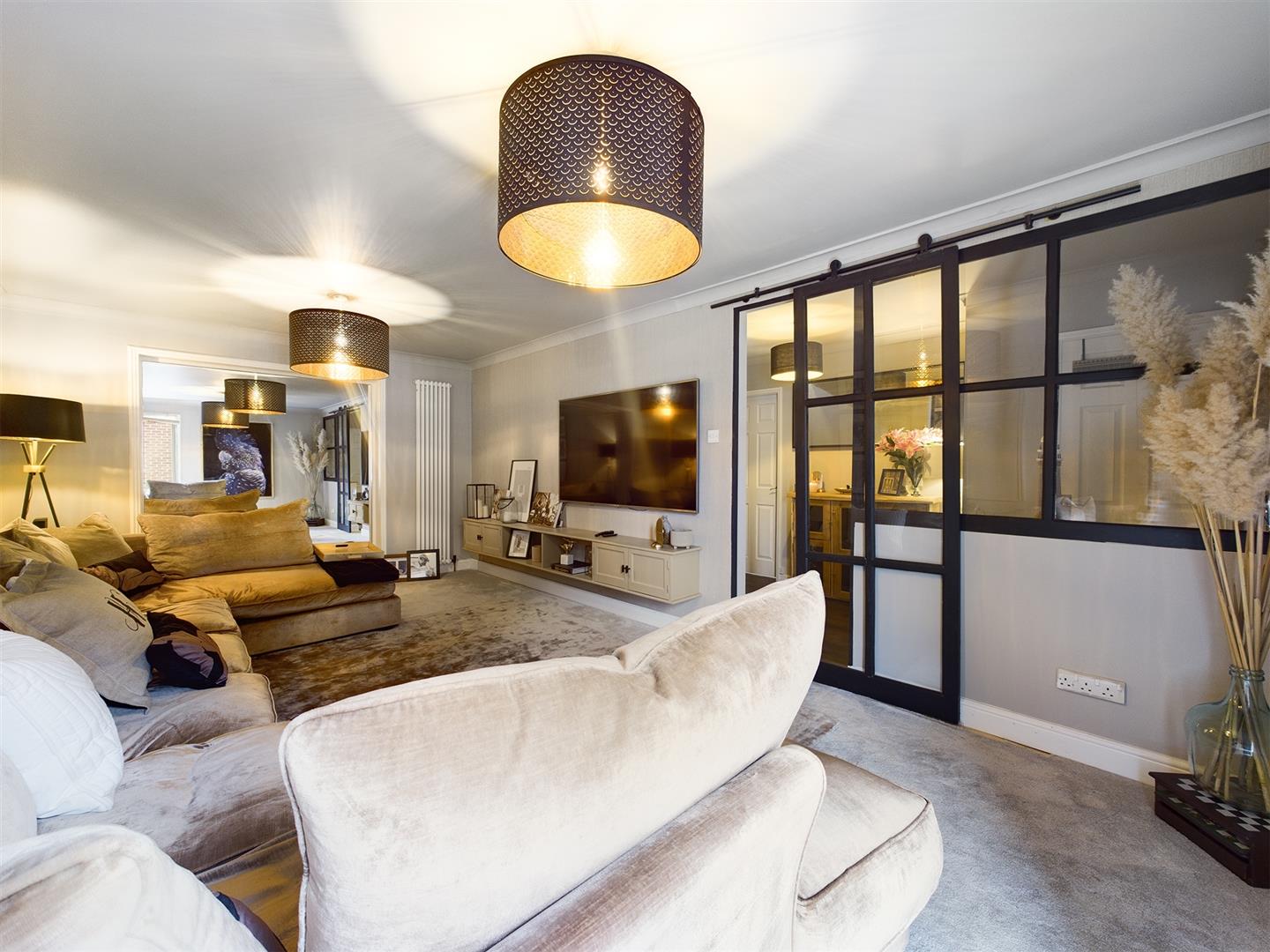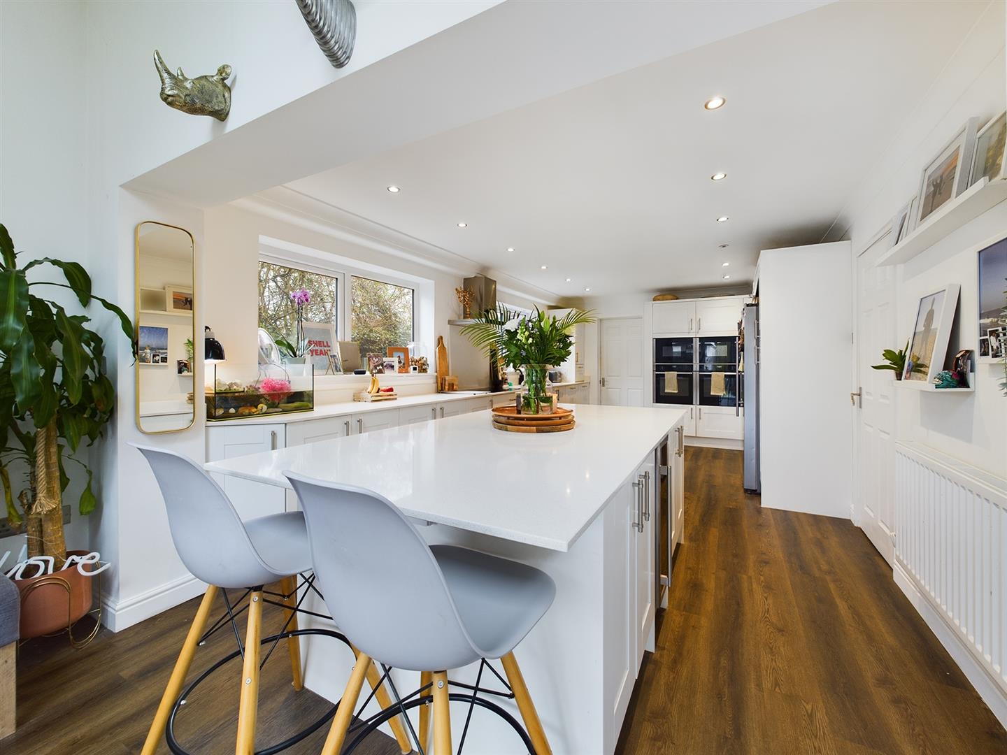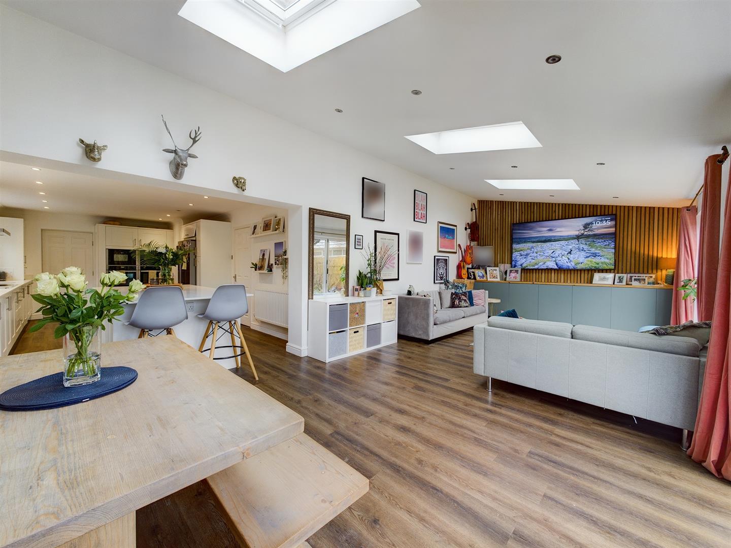 With over 2200 square feet of accommodation set over two floors this immaculately presented property consists of a hallway with stairs to the first floor, and doors to the reception room, lounge dining kitchen and downstairs WC. The elegant reception room is light and spacious with feature panelled walls. There is a fabulous extended dining kitchen and family room which easily accommodates a six seater dining table, lounge area and Island. First floor: four bedrooms, bathroom, two ensuites. Externally: driveway parking, attached garage, rear garden and garden room incorporating bar and seating area.