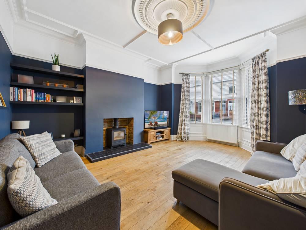 With over 1250 square feet of accommodation set over two floors, this superb property consists of a vestibule and spacious entrance hallway with painted paneling to half wall height, built in storage cupboard, stairs up to the first floor and doors to the reception rooms, downstairs WC and dining kitchen. The elegant, front facing reception room has a period decorative ceiling and recess to chimney breast with log burner. The light and spacious, rear facing reception room has a period cast iron fireplace and is open plan to the dining kitchen. The fabulous dining kitchen easily accommodates a family dining table and benefits from a good range of contemporary units with contrasting worktops and integrated appliances including double oven, gas hob, chimney hood, fridge freezer and dishwasher, with space for a washing machine. The landing spacious with doors to the bedrooms and bathroom, and stairs up to the loft area. The three double bedrooms are all stylish, the main with a recess to chimney breast and the rear facing with a period cast iron fireplace and built in cupboard. The beautiful family bathroom benefits from a free standing bath with central mixer taps and shower attachment, a walk in rainfall shower, a countertop wash basin with cupboards beneath and low level WC. Externally there is a front town garden and a good sized rear garden with lawn, paved patio areas and a well stocked, planted raised bed.