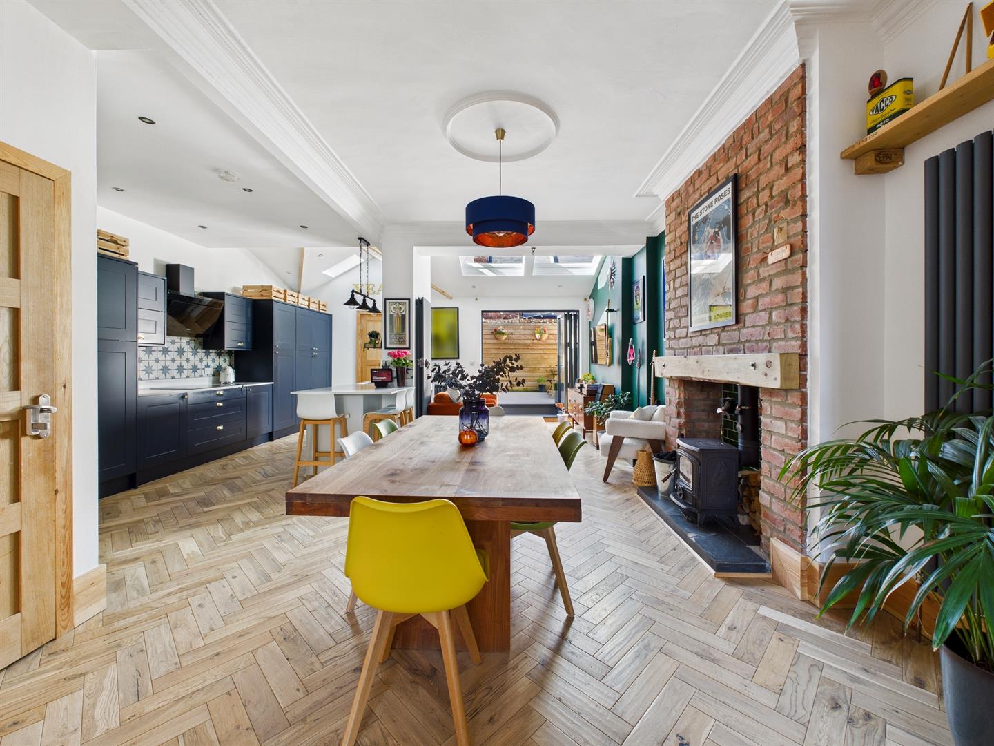 With over 1750 square feet of accommodation set over three floors, this immaculately presented property consists of a vestibule and hallway with stairs to the first floor, understairs storage cupboard and door to the reception room. The elegant reception room features Oak herringbone flooring and a period fireplace. The reception room is open to the fabulous and contemporary dining kitchen and family room which easily accommodates a six seater dining table, lounge area and Island. The kitchen benefits from a good range of units with stone worktops and integrated Smeg appliances including eye level oven, induction hob, glass extractor hood, fridge freezer and microwave. There is space for washing machine and the Island includes further units, breakfast bar and dishwasher. This fantastic space also has Oak herringbone flooring, Velux windows and bi-folding doors to the rear patio garden. To the first floor there are two spacious bedrooms, a smaller third bedroom and a beautiful bathroom benefitting from a roll top bath, walk in shower, pedestal wash basin and low level WC. The stunning fourth bedroom is located on the second floor with fitted wardrobes, a corner spa bath and the dormer window opens up to create an internal balcony. There is also a generously sized ensuite with wet room rainfall shower, vanity wash basin, built in storage and low level WC. Externally there is a detached garage to the rear, front town garden and a beautiful west facing patio rear garden with composite decking and feature wood wall.
