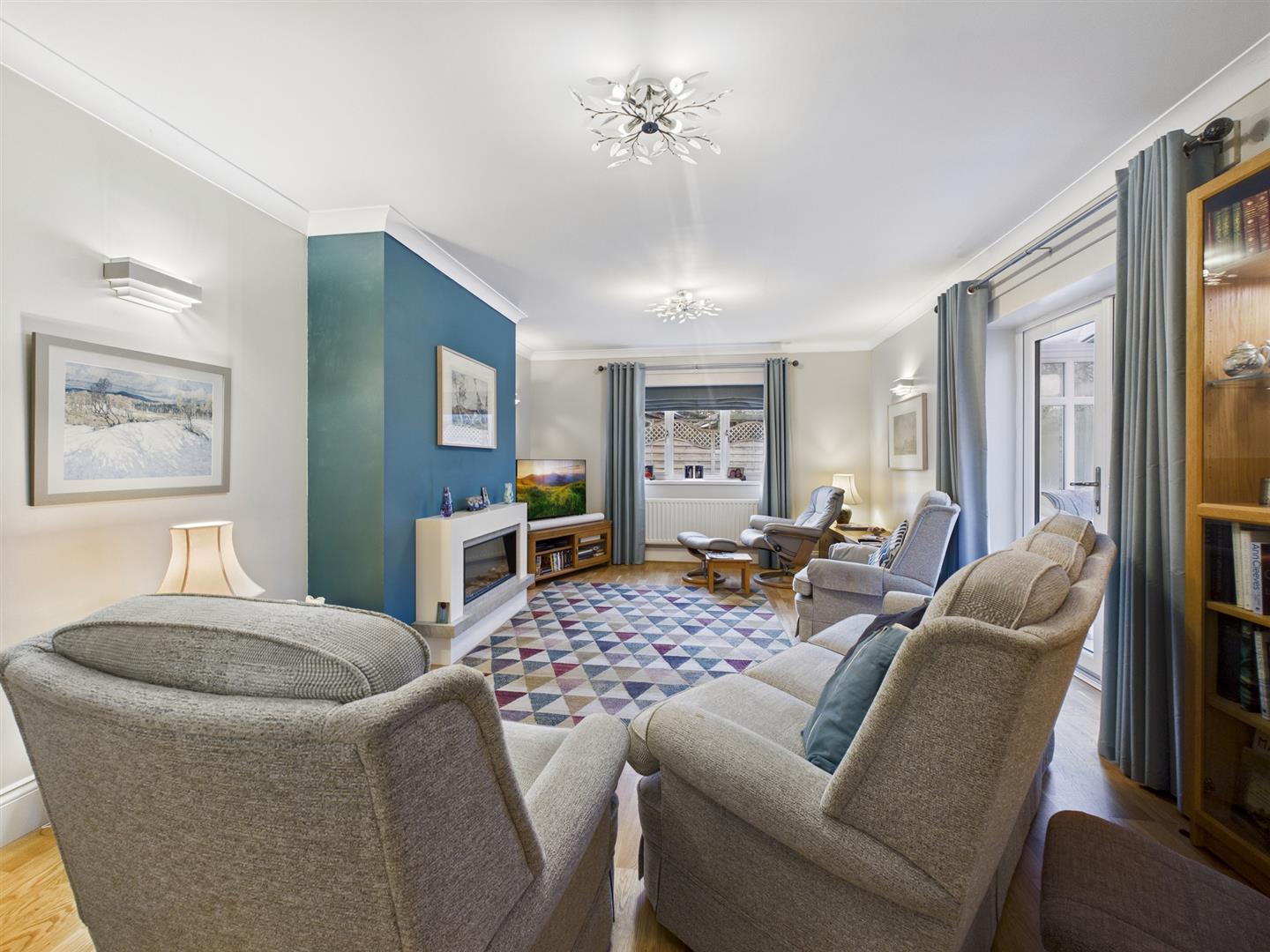 With over 1800 square feet of accommodation, this beautiful property consists of a vestibule and spacious and welcoming entrance hallway with a cloaks cupboard and doors leading to the reception room, kitchen, bedrooms, bathroom and garage. The generously sized reception room features a contemporary fireplace and has French doors leading to the light and airy conservatory. The lovely kitchen diner easily accommodates a six seater dining table as well as an Island with breakfast bar. The kitchen benefits from a good range of units with contrasting worktops and integrated appliances includes an eye level double oven, gas hob, chimney hood and space for a fridge freezer and dishwasher. There are two double bedrooms, the main bedroom has a modern ensuite with walk in shower, vanity wash basin and integrated WC, a third smaller bedroom, currently used as an office, and a good sized, family bathroom benefitting from a bath, walk in rainfall shower, vanity washbasin and integrated WC. Externally there is an attached garage, a front garden with driveway parking for multiple cars and south/west facing rear and side gardens with patio, lawns, mature shrubs and raised bed.