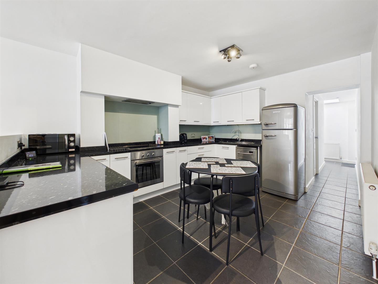 With over 760 square feet of accommodation, this charming property consists of an entrance hallway with doors to the lounge diner and bedrooms. The light and open plan lounge diner and kitchen has a bay window and easily accommodates a dining table. The kitchen benefits from a good range of units with contrasting worktops, integrated single oven, hob, extractor hood, fridge freezer and dishwasher. There are two stylish bedrooms, one with a bay window, a modern ensuite with walk in shower, vanity wash basin and low level WC. The main bathroom includes a bath with shower attachment and feature skylights above, vanity wash basin and low level WC. There is also a utility area with sky light, washing machine and door to the rear yard. Externally there is a front town garden and rear yard.