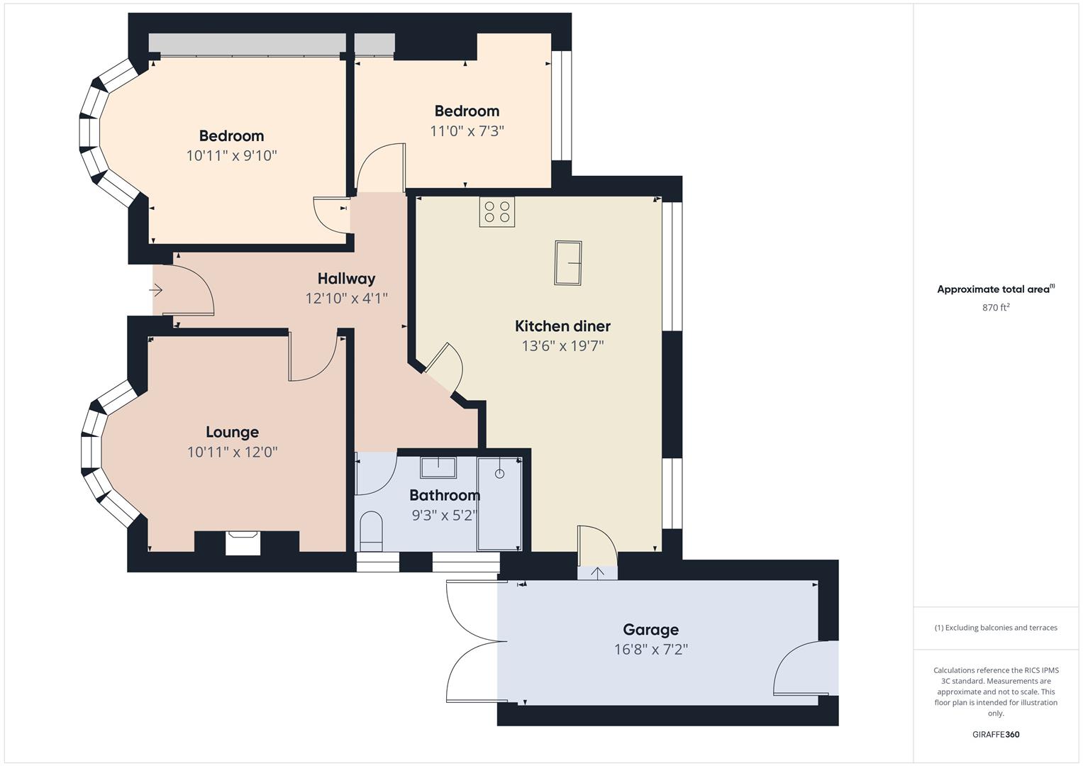 With over 800 square feet of accommodation on offer, this fabulous property consists of an entrance hallway with doors to all rooms. There is a front facing lounge with bay window and feature fireplace, and a contemporary kitchen diner with space for a dining table and a wide range of contemporary units with contrasting worktops and integrated appliances including an oven, gas hob, chimney hood, fridge freezer and dishwasher. There are two good sized bedrooms, one with fitted wardrobes and the other with a feature fireplace. The stylish bathroom benefits from a walk in double rainfall shower, pedestal wash basin and low level WC. Externally there is an attached garage with lighting, power and space for a washing machine, a well maintained front garden with driveway parking and a beautiful, laid to lawn rear garden with patio and mature planted borders.